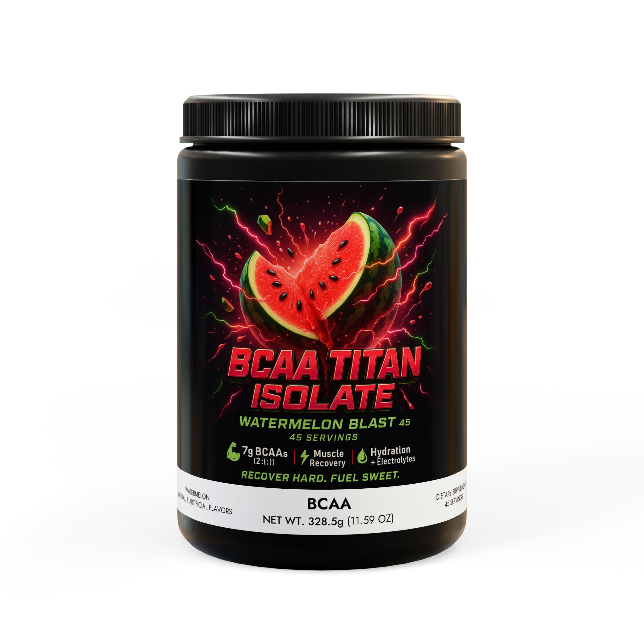BCAA TITAN — Watermelon Surge is a delicious and powerful intra-workout supplement designed to help you recover faster, train longer, and maintain muscle during intense physical activity. With an optimal 2:1:1 ratio of L-Leucine, L-Isoleucine, and L-Valine, this formula supports muscle protein synthesis and helps reduce breakdown during training.